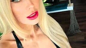 Blonde Milf Vanessa Cage Sucks Huge Cock in Black Leather Lingerie Nude