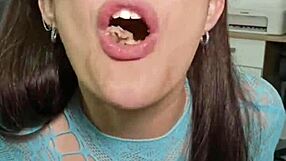 Brunette pigtail lover spits food fetish mess over big ass curves