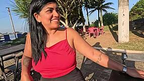 latina wife strips naked for beach lover bang