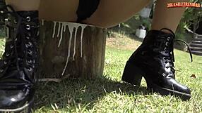will this hot brunette deliver an intense footjob session with licking and orgasmic masturbation