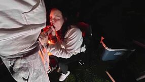 Wife bends over big ass for sneaky doggystyle pounding at public campsite