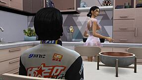 sims 4 stepdad bangs stepdaughter in kitchen near wife
