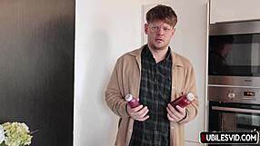A petite brunette teen masturbates wildly after her sexy playboy interview