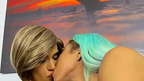 दो टीगर्ल्स ने गर्म फायरप्लेस सेटिंग में जोरदार गांड चुदाई की