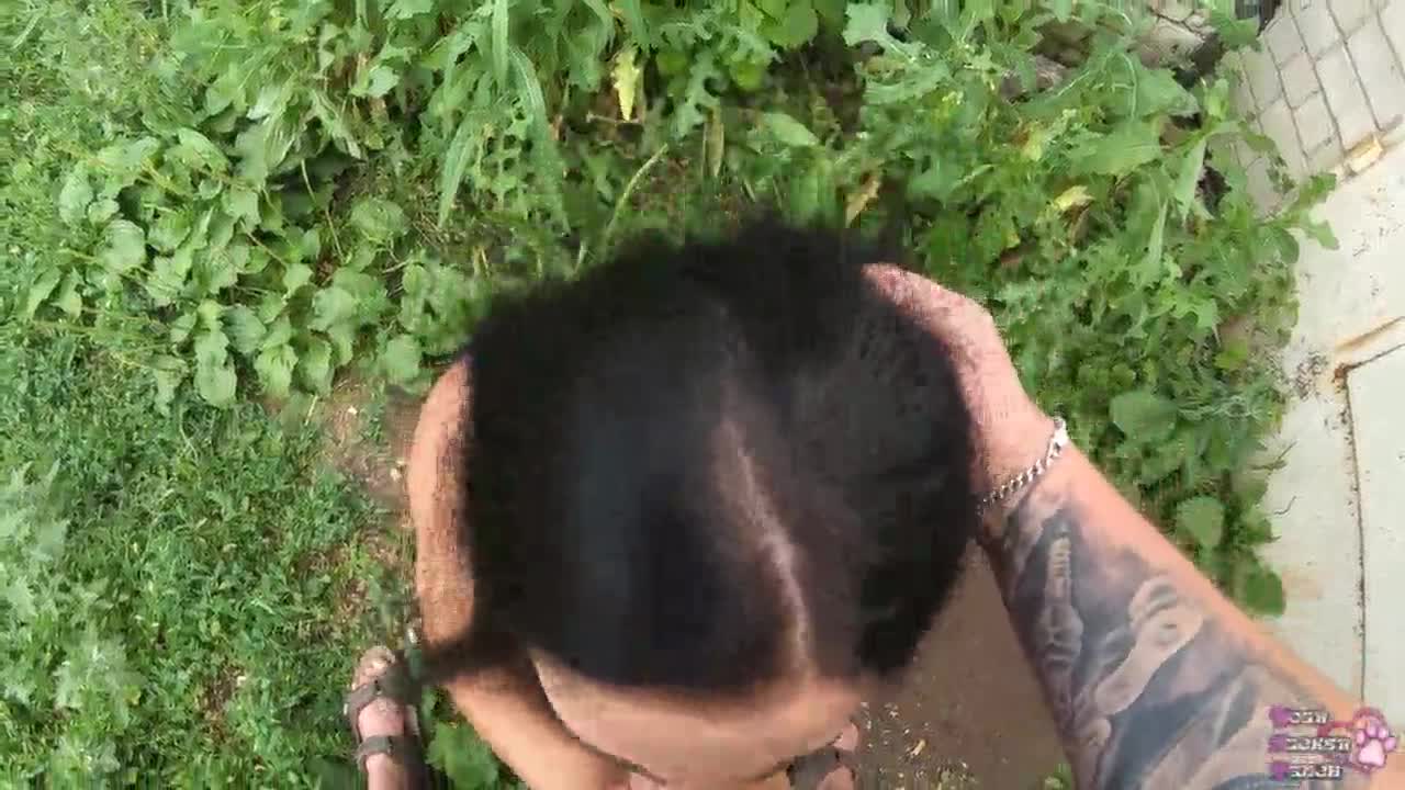 Real fast risky blowjob behind the garages with cum in mouth and swallowing from a girl next door girlfriend.