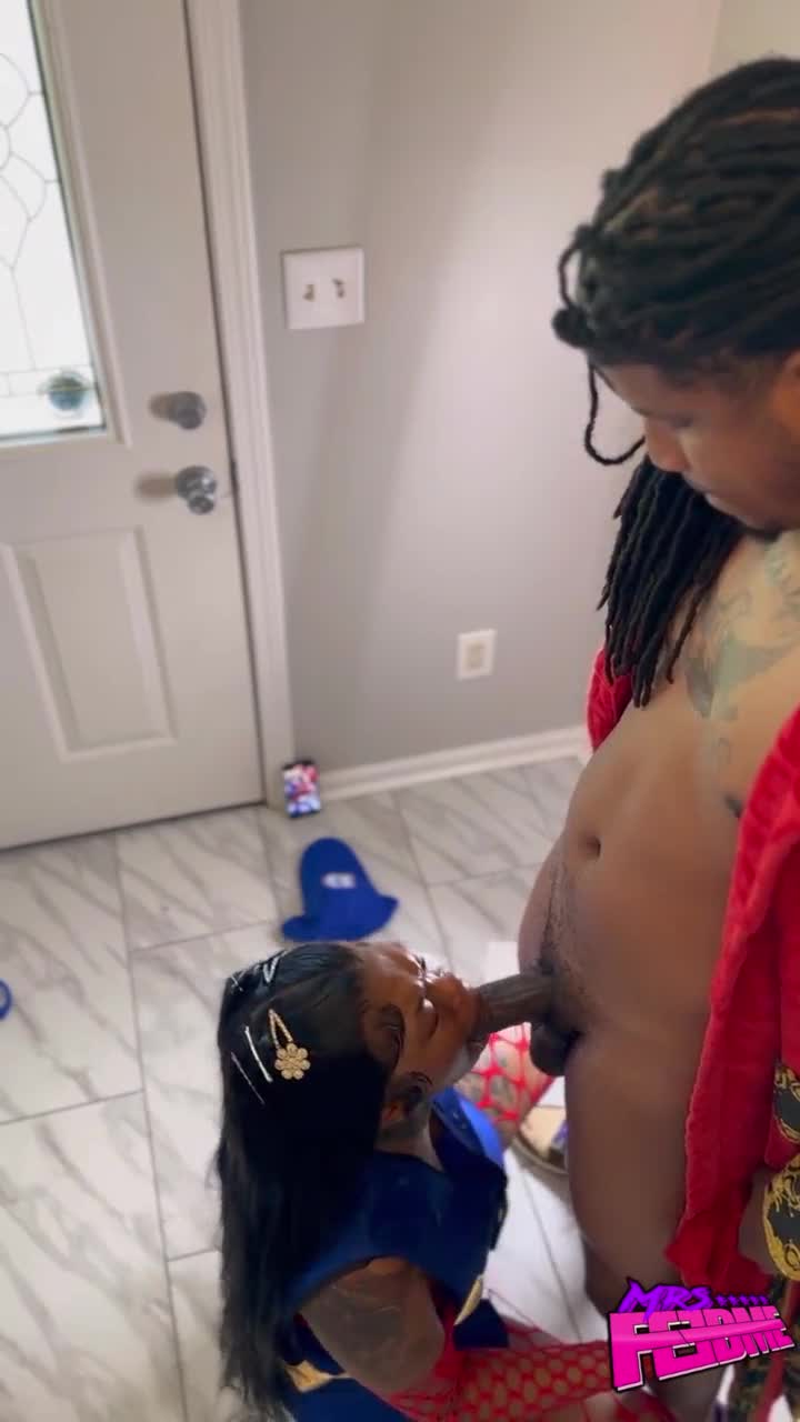 Ebony Woman Gives Sloppy Blowjob To Big Black Cock With Spitting And Deepthroat
