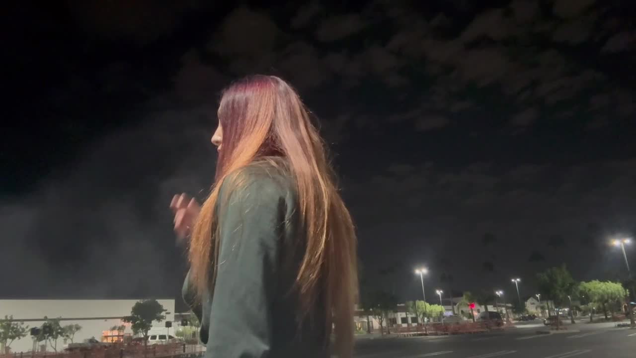 Italian milf with big tits rides in LA car flashing her hard nipples everywhere
