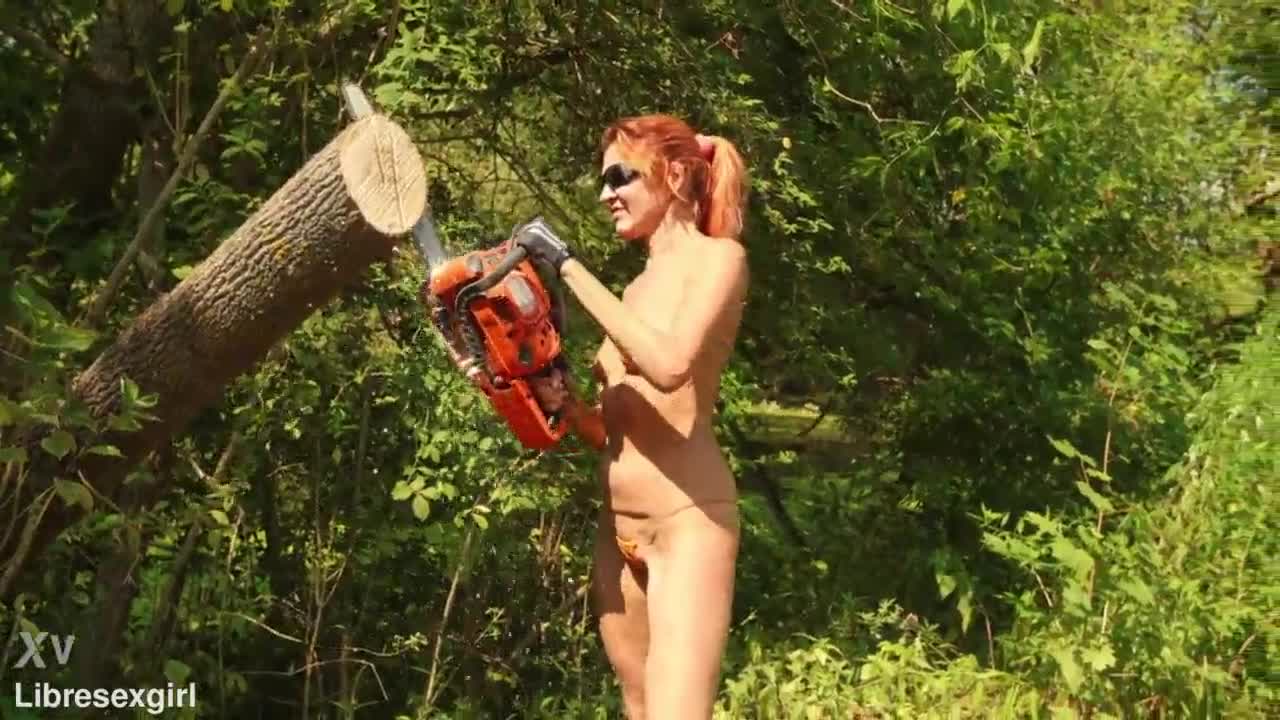 Blonde with big ass strips in forest playing with hairy pussy outdoors