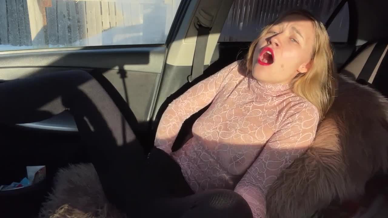 She grabs her vibrator for a solo session in the car. Real housewife hits intense orgasm outdoors.