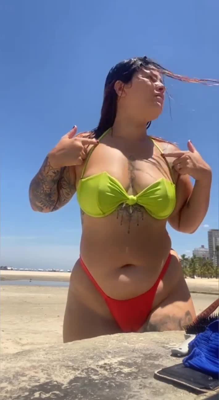yo, check this latina shaking her huge ass on the beach, damn hot!