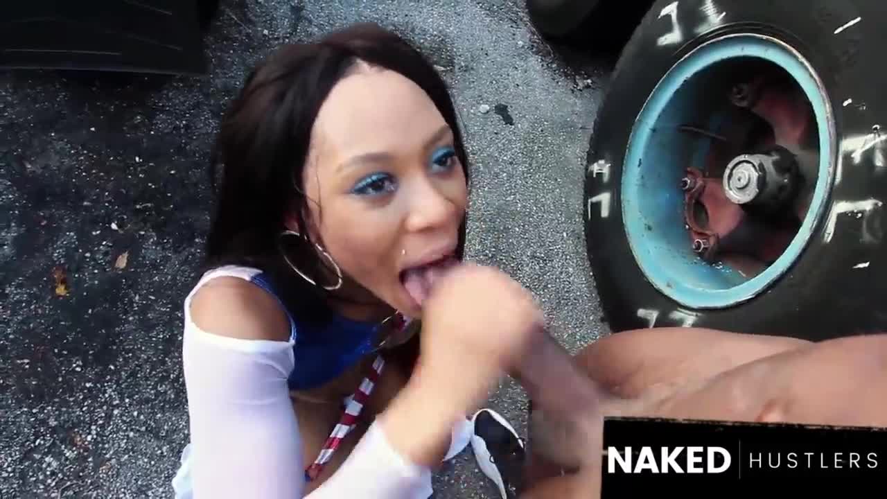 Latina Redhead Deep Throats Huge Cock Outdoors