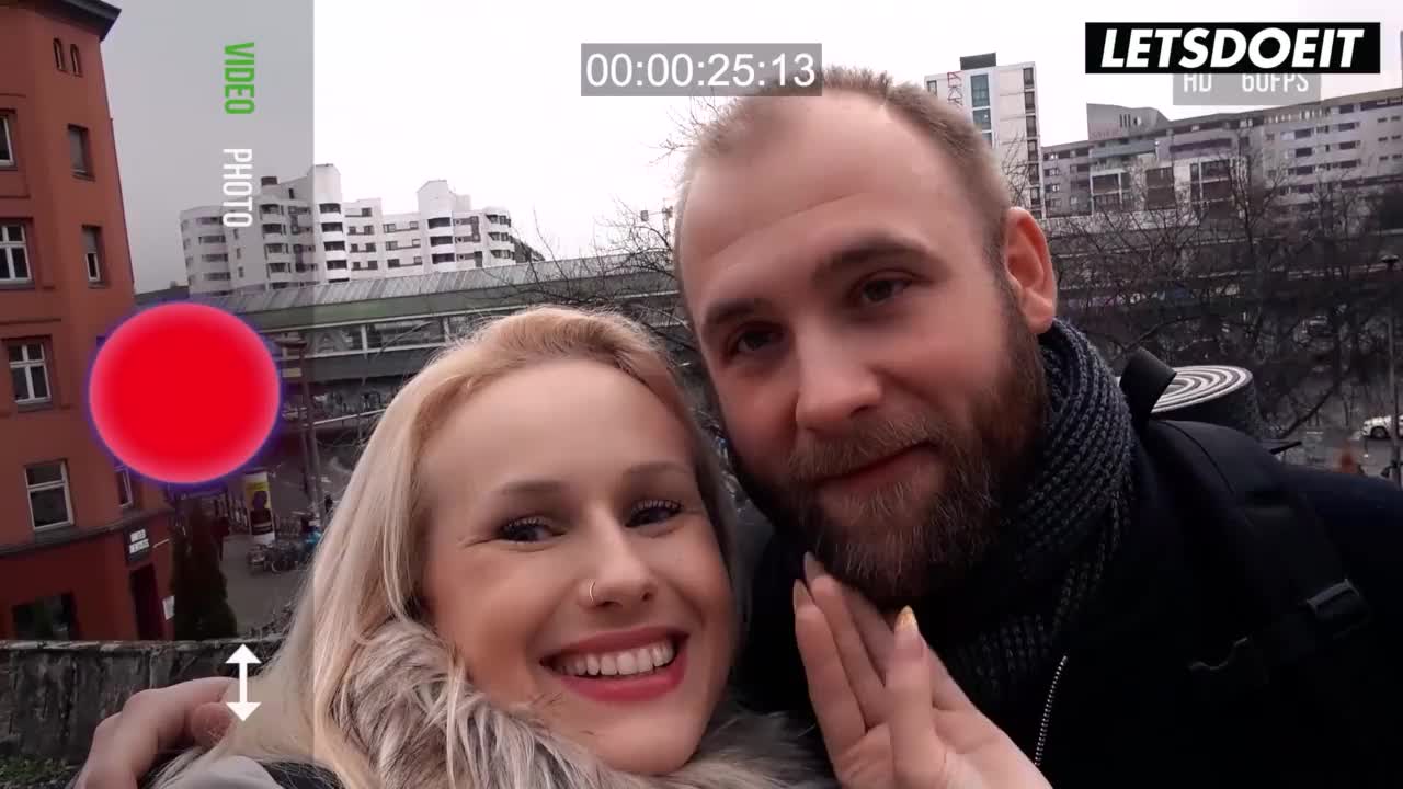 Shorthaired beauty sucks and fucks a big cock in public outdoors
