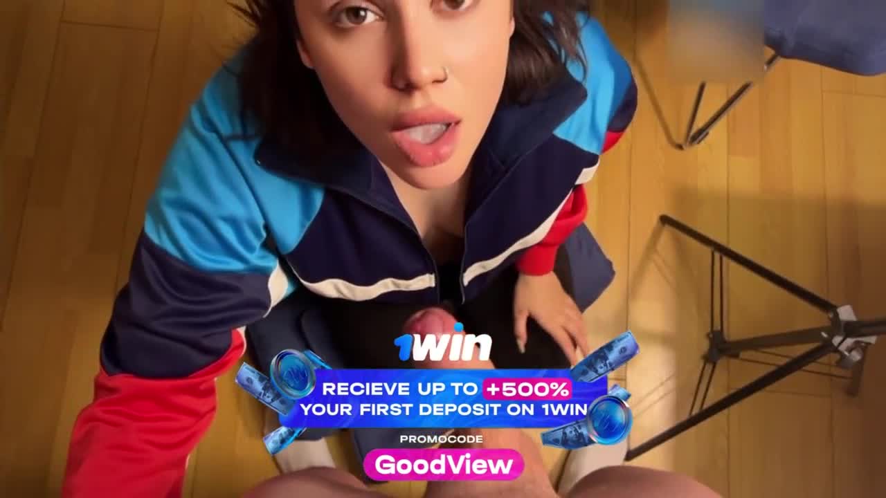 step sister teases with a handjob, letting cum drip on her ass in tight yoga pants