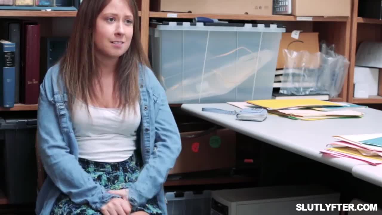 Going hard on the caught teen shoplifter in office gets the officer's cock thick for domination fuck
