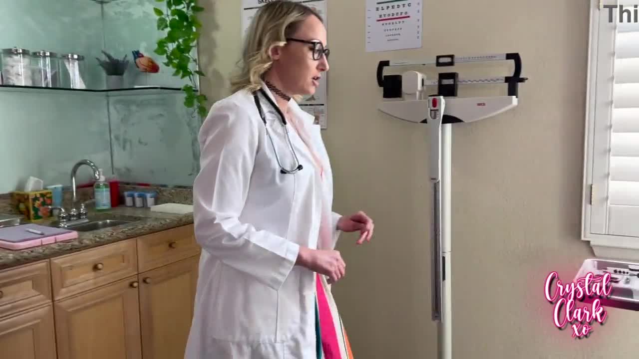 ब्लॉन्ड मिल्फ हील्स में डॉक्टर को क्रश करती है शेव्ड योनी एक्शन से।