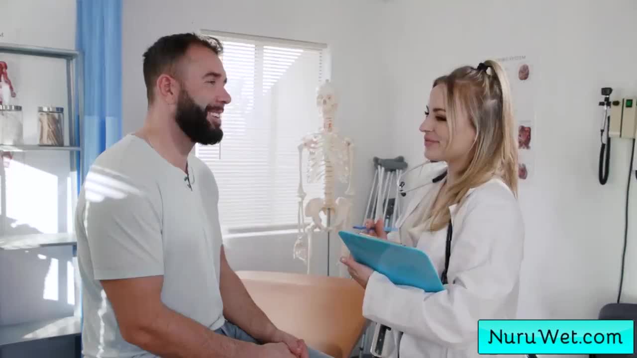 Sensual blonde teen masseuse Anna Claire Clouds rubs body on Will Pounder in nuru session