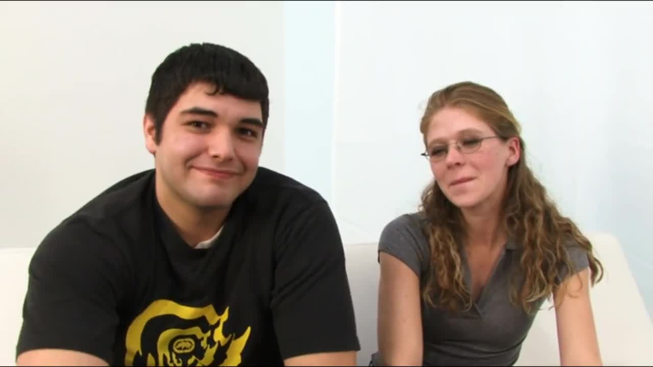 I feel so excited when the cute brunette babe with big natural tits gives her first blowjob and gets cum on tits