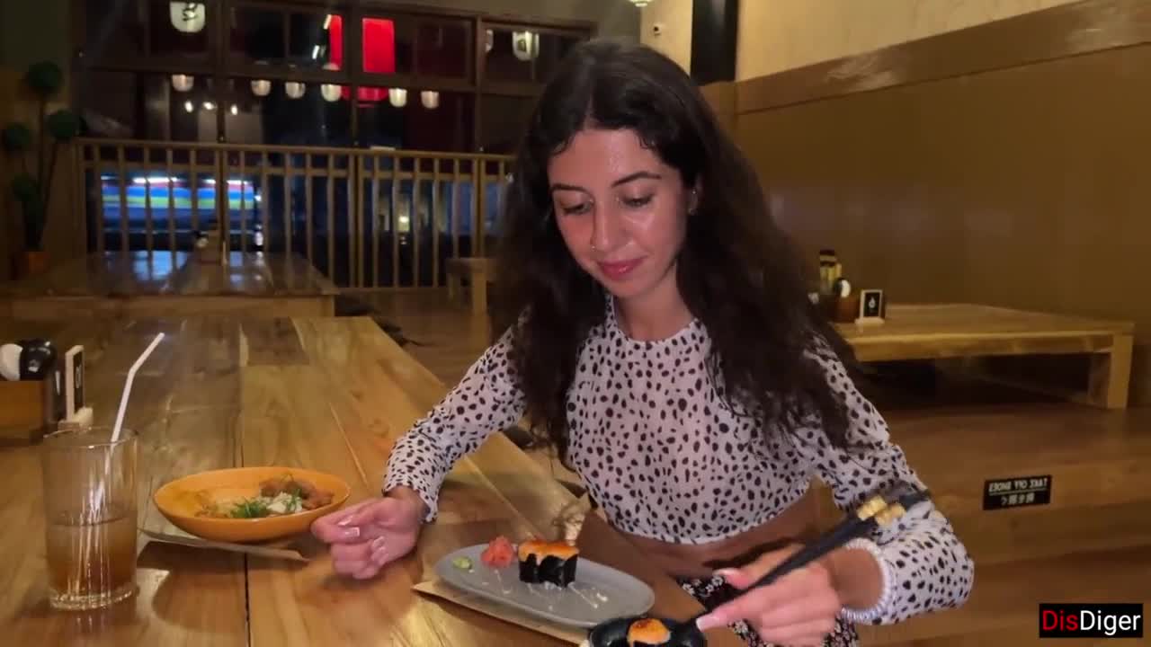 Cute Girl Eating Burger With Cum On Face In Public Cafe