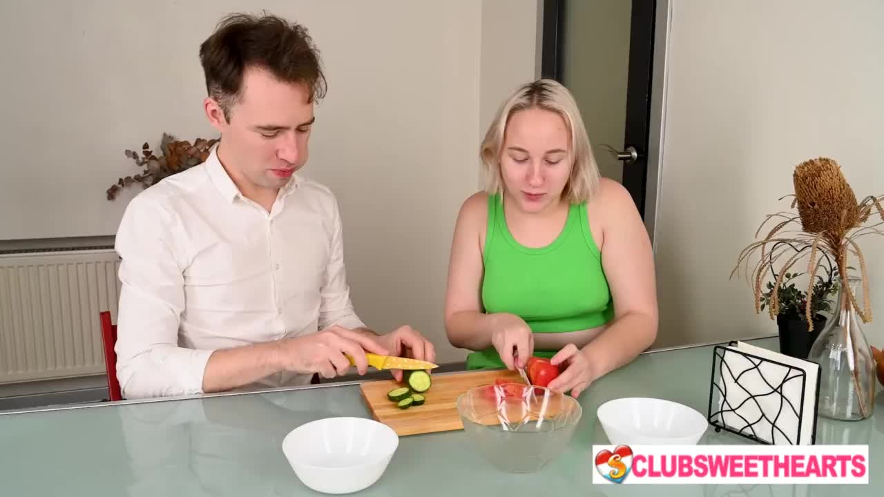 She wanted noodles, but I added extra sauce in the kitchen with riding and cum