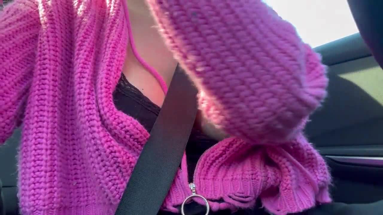 I drive around as Italian milf Artemisia Love flashing my big natural tits outdoors