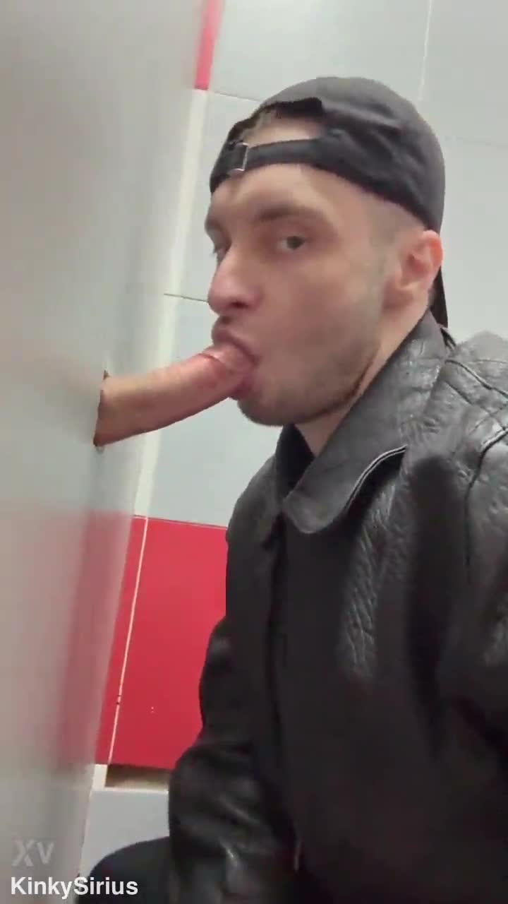 Kerry Louise in fishnets and shoes services monster cocks at gloryholes.