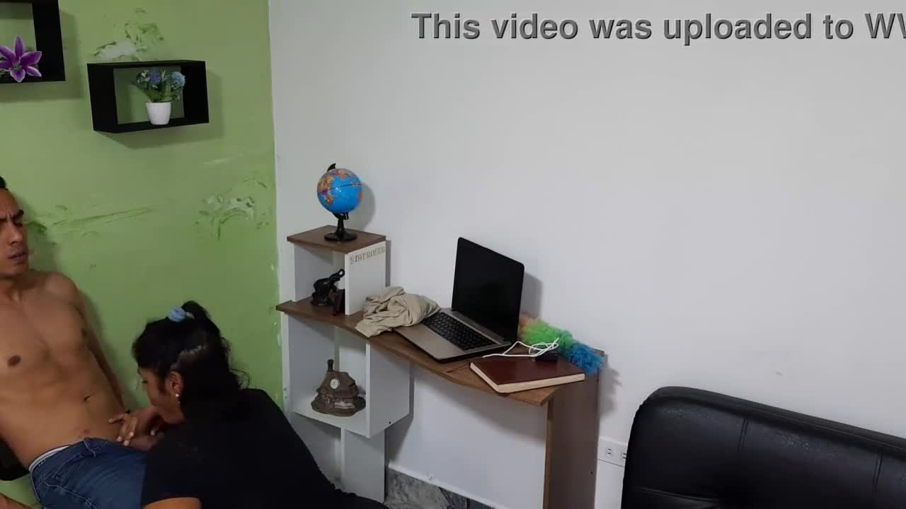 colombian blonde milf gives stepson handjob footjob in bedroom