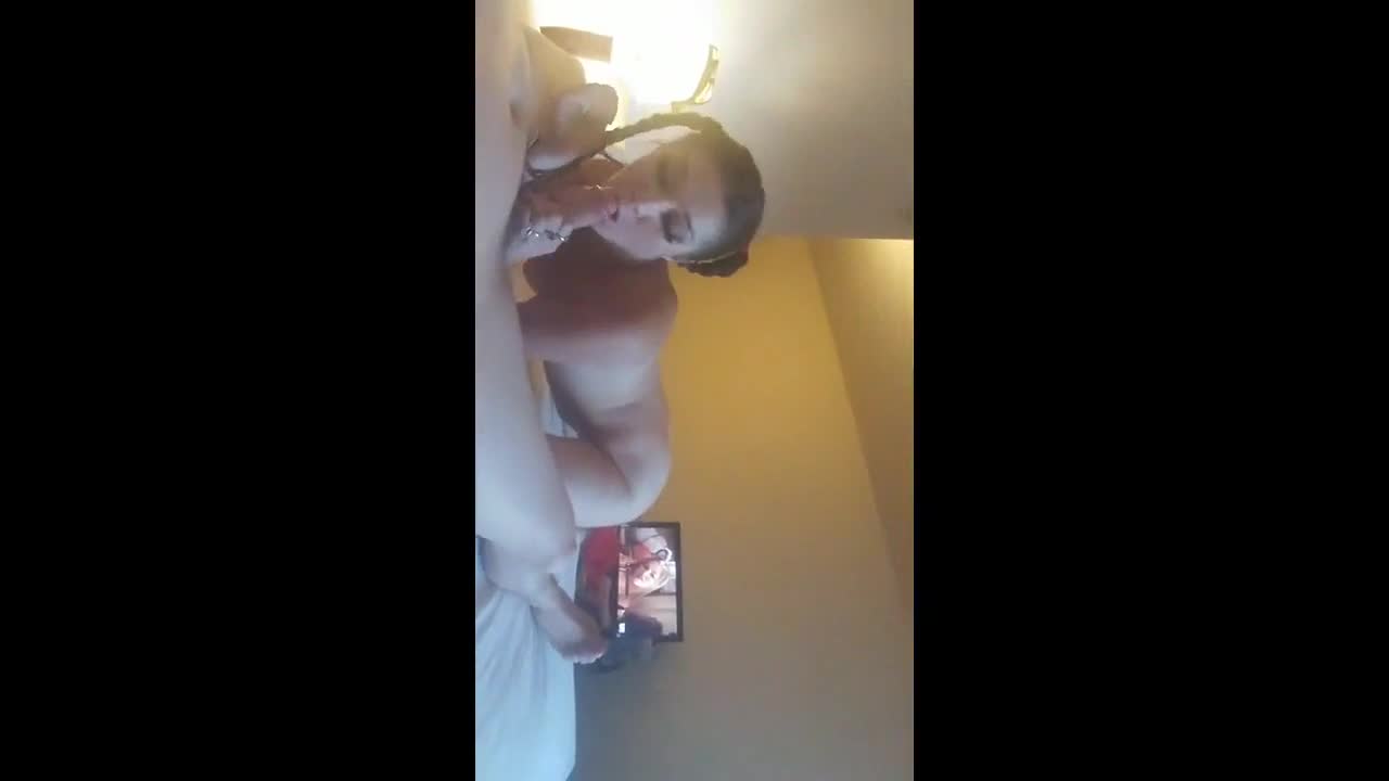young chick strips oiled body and sucks man's cock roughly