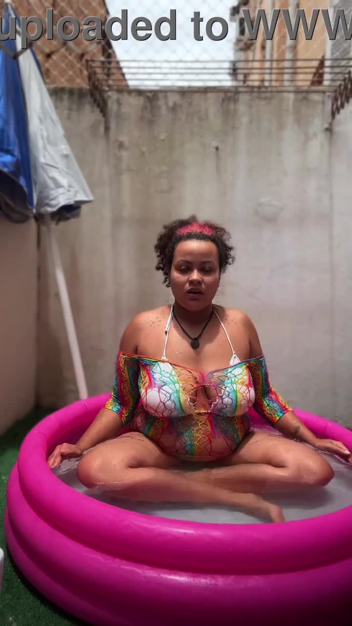 All natural ebony babe stripping by the pool