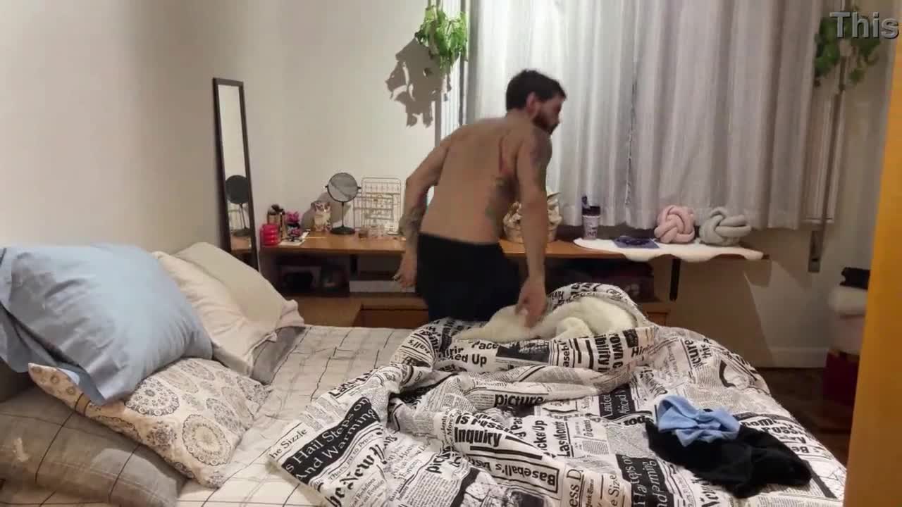 बड़ी तंताली डॉल के साथ खेलने के बाद रूममेट पर स्क्वर्ट कर दिया, पति ने रंगे हाथों पकड़ लिया