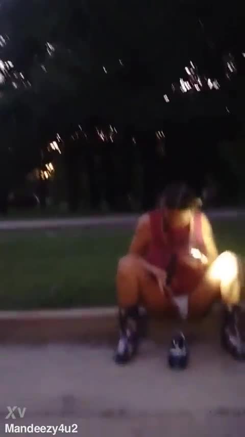 PAWG Sunny Lane twerks outdoors in lingerie. She masturbates her big clit and huge natural tits eagerly