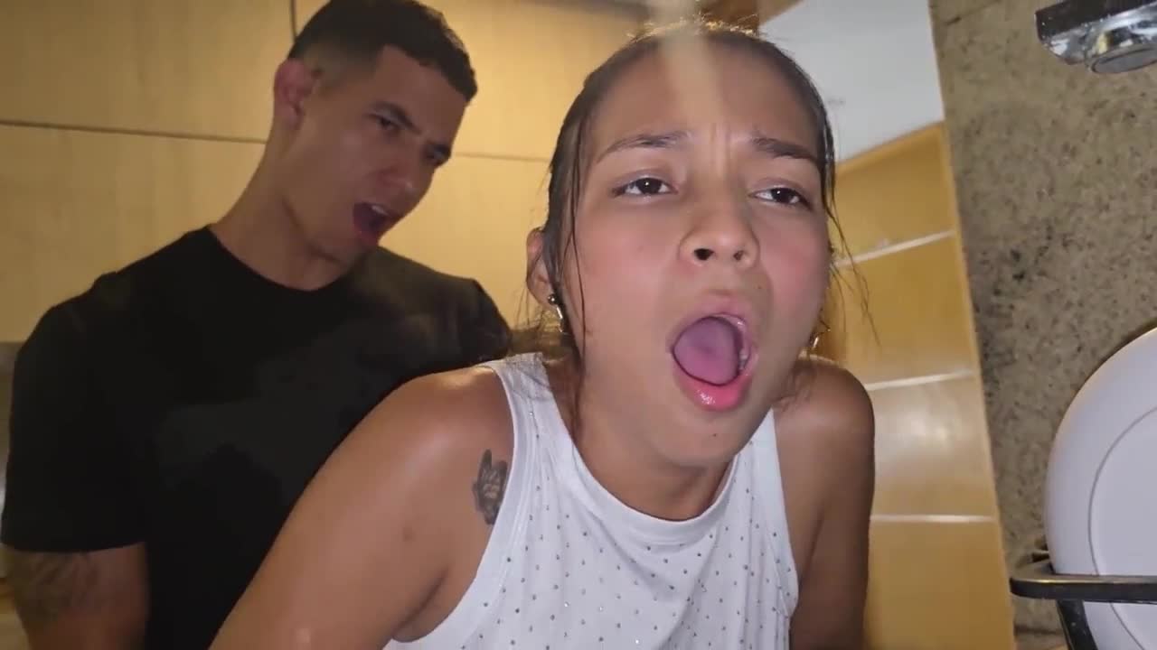 Indian Step Sister With Big Tits And Shaved Pussy Sucks And Fucks Brother's Big Cock In Kitchen