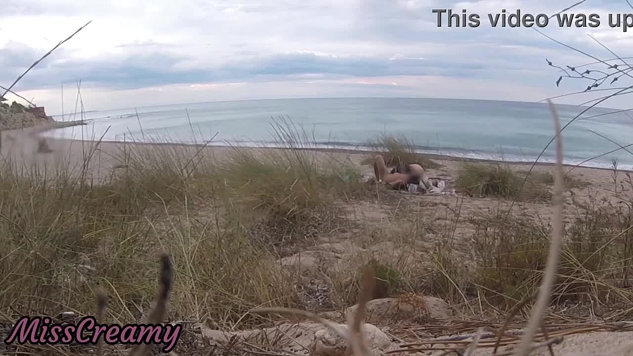 Amateur milf gets fucked and creampied hard on a public beach voyeur style