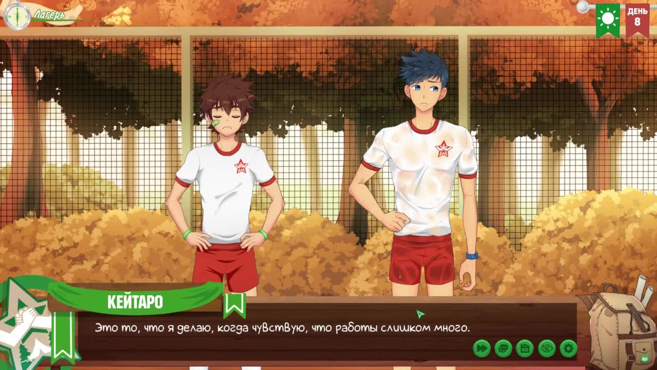 game friends camp episode 6—keitaro jerks off in shower with russian voice acting