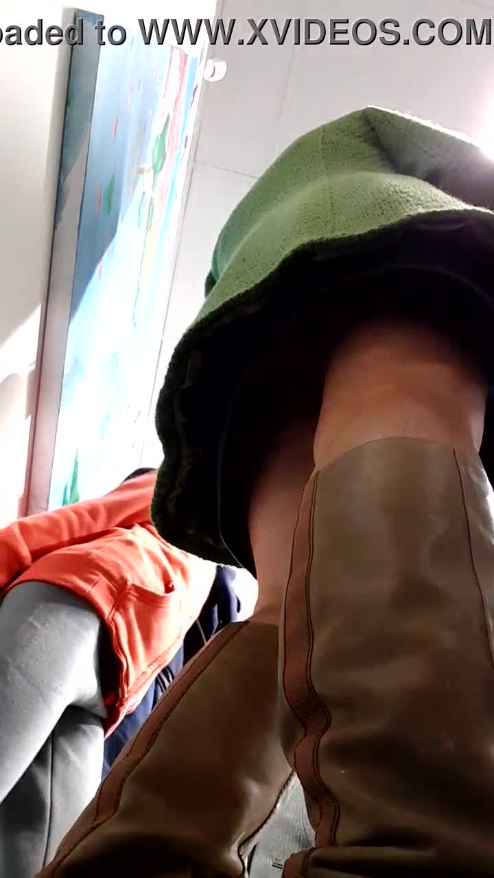 Bold upskirt view of beautiful Argentine university student Miranda without panties