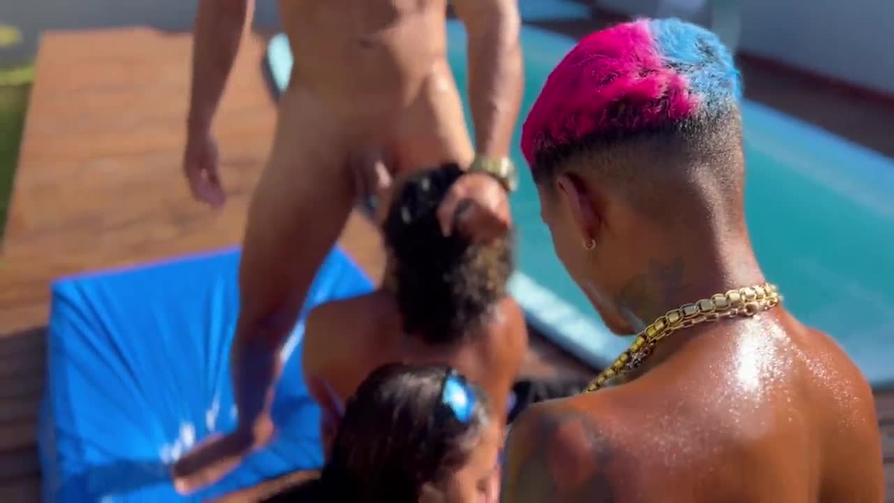 Devoured the biggest Brazilian pussy with my wife and her friends PamPam, Wanessa Lobato, and Maitê Sasdelli outdoors. Joined the hardcore 3some for shaved ass pounding.