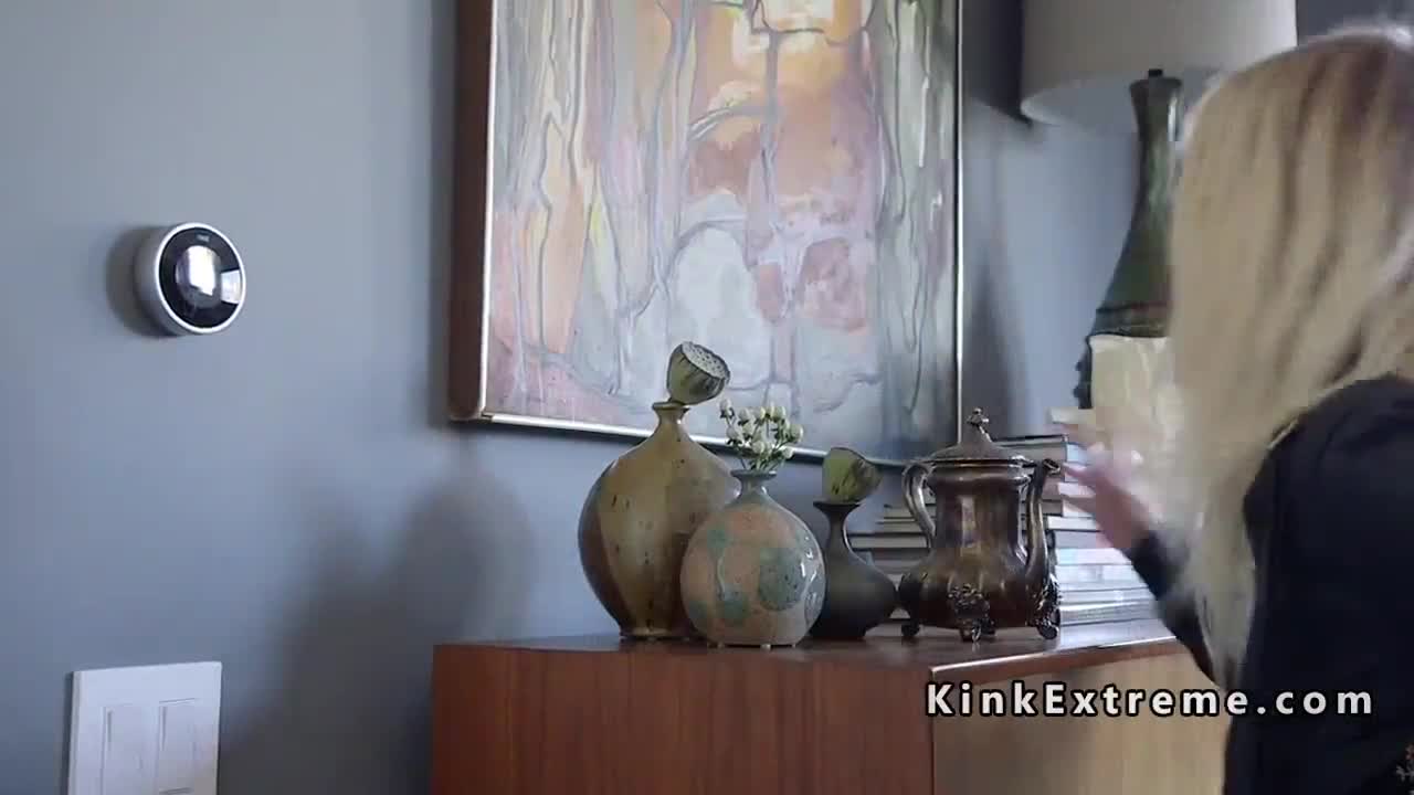 Hot Blonde Ties Up Male Sub for Kinky Anal Flogging