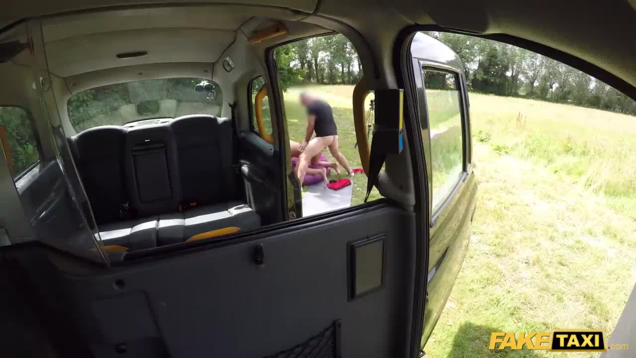 Female fake taxi driver lets passenger fondle her huge boobs in backseat. Wild ride awaits!