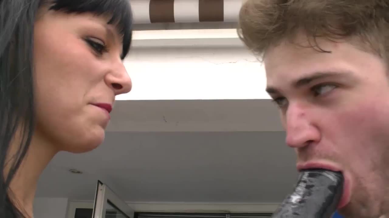 Goth brunette girlfriend chats with friend about deepthroat.