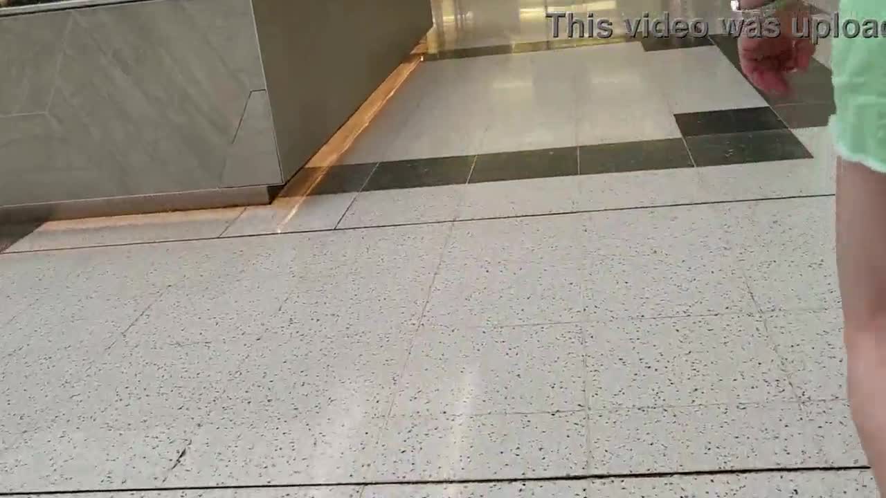 no panty under short dress, upskirt flash of pussy walking in public city center - misscreamy