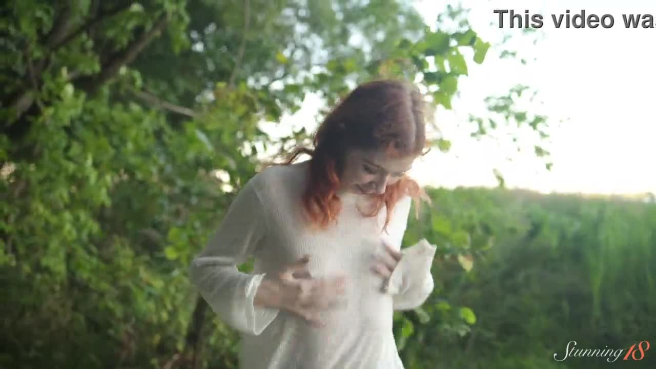 Pretty redhead Scarlett Pain gets her shaved pussy licked and fucked rough in missionary with squirting orgasm