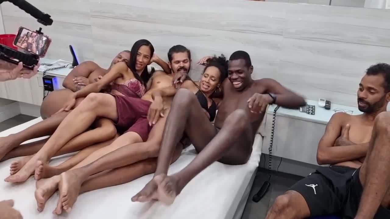 in the hotel room after the swing party we had a wild group session with Brazilian amateurs including cum swapping and rough action