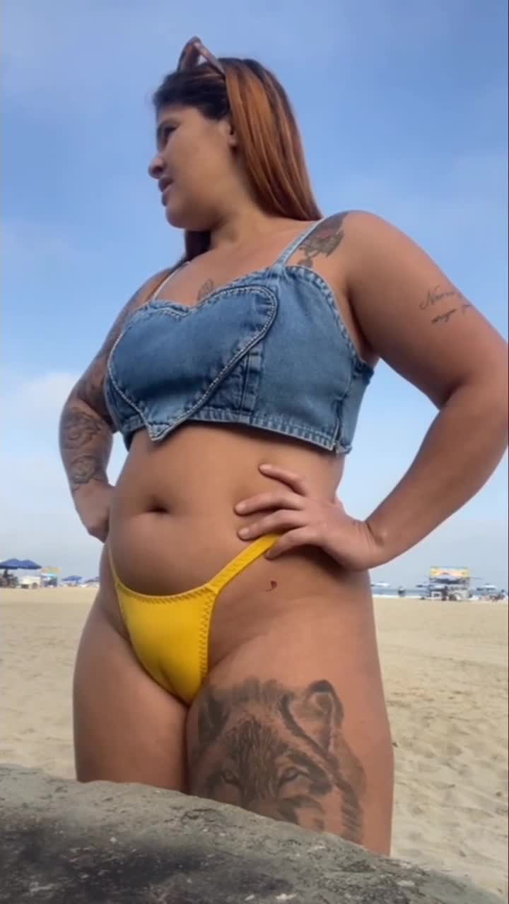 encontrei essa morena tatuada perdida na praia de nudismo... tive que fazer ela sentar no meu pau