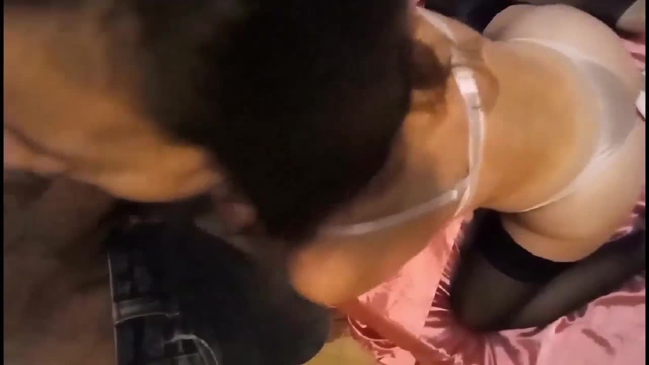 French amateur slut rims and deepthroats in satin lingerie corset bra panties heels