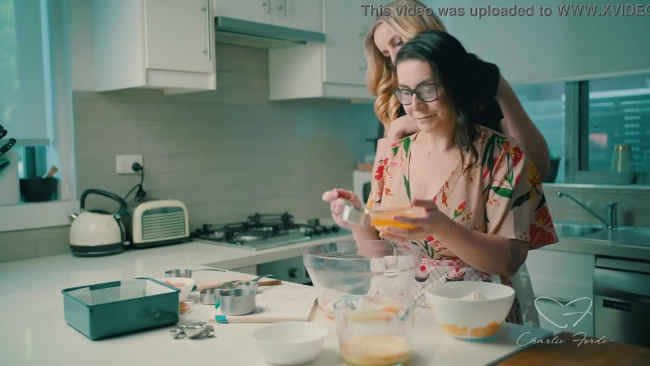 टीन बेकर्स काम पर लेस्बियन किसिंग और सिजरिंग में डूब जाती हैं